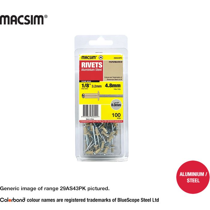 AS43 RIVET-PAPERBARK CLAM PK