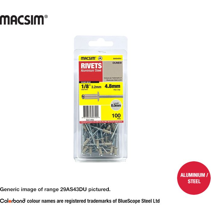 Suitable for fixing sheeting to framework. Applications: sheds, garage doors, electrical goods, flyscreens.