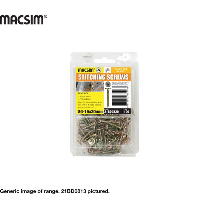8G X 20MM BUTTON STITCHING SCREW ZP B/P 100